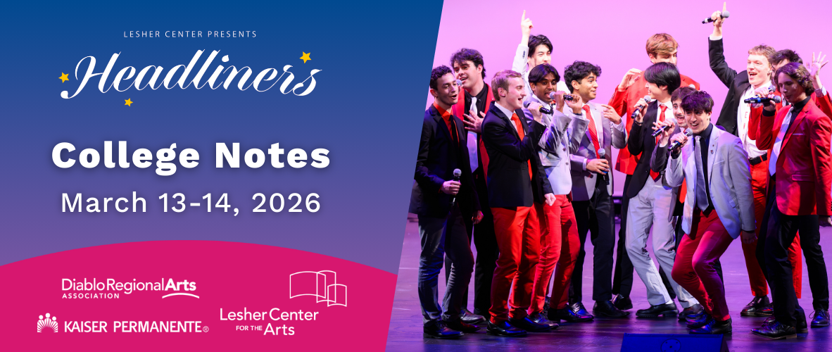 On March 13 and 14, the top collegiate a cappella groups from throughout the US head to Walnut Creek for Kaiser Permanente’s College Notes, a thrilling, only-at-the-Lesher Center event celebrating the perfect harmony of bright minds and bright voices. Hosted by Pitch Perfect’s Deke Sharon, this year’s line-up includes a stellar line-up of award-winning groups: Belmont’s Pitchmen, Northeastern’s Pitch Please, Tuft’s Beelzebubs, UCLA’s Scattertones and Vanderbilt’s Melodores. Always a sell-out event, tickets are on sale online.