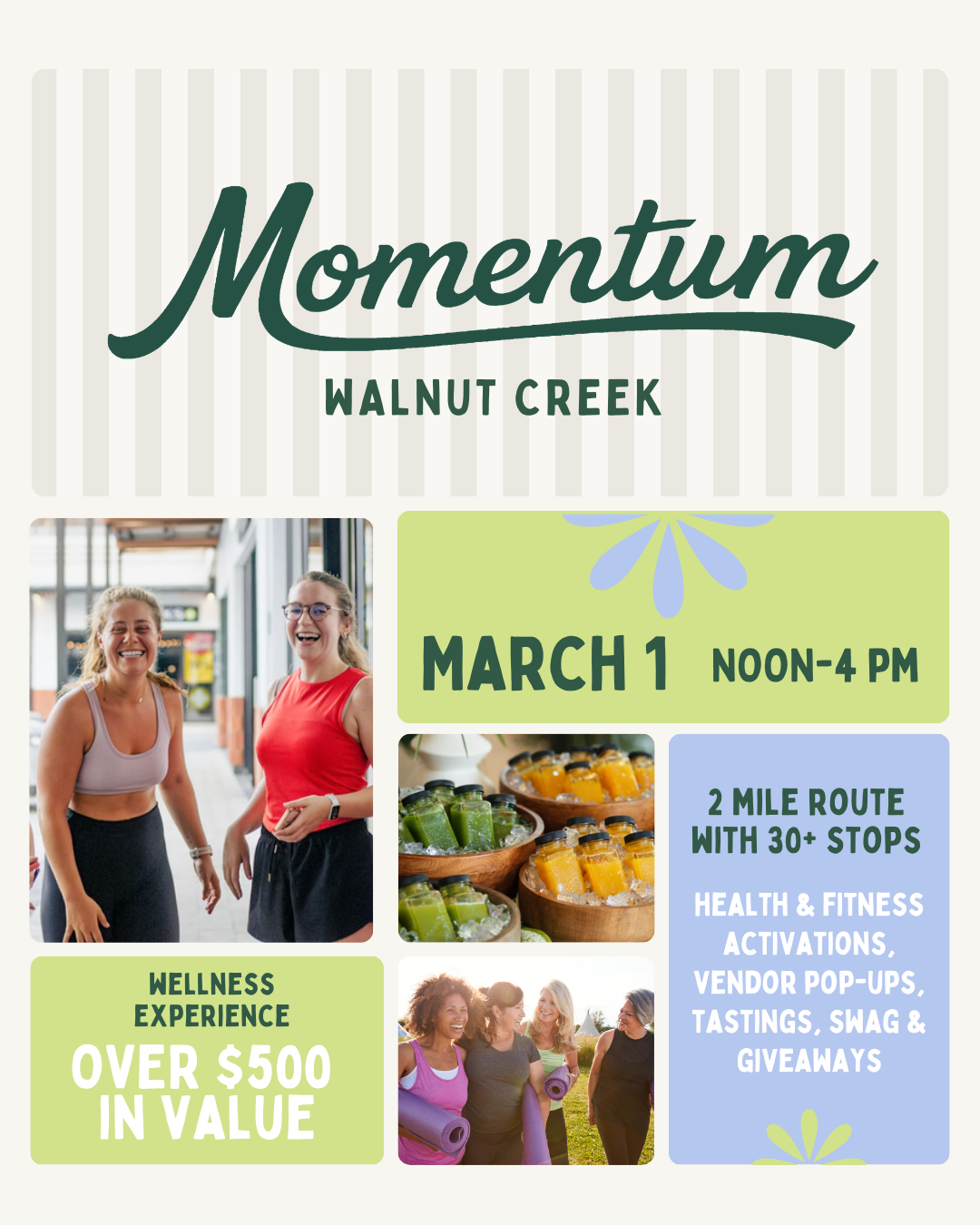 NEW! Pilates Mat–ALL LEVELSTuesdays, 3/24–4/21 Build core strength, improve posture, and enhance flexibility and mobility through controlled, low impact movements! |